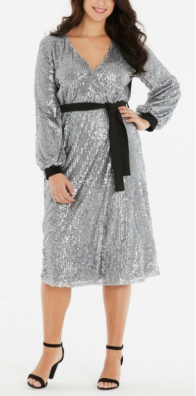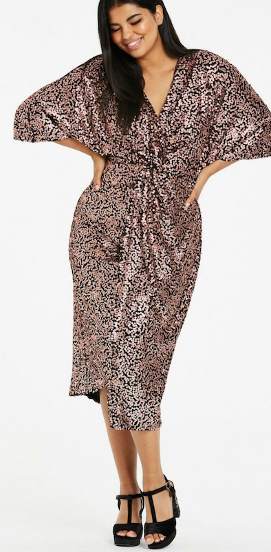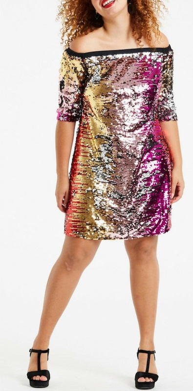 No matter your size, shape, or budget, both of these “round ups” have you covered. All of these plus size sequin dresses range in sizes from 8 to 46. Yes, CurveGirl‘s entire collection goes up to size 46! Some of the dresses only go to size 20, while others go to 24 or larger. And some are great for apple shapes, like this one and this one. For tips on picking dresses for apple shapes, go here. These dresses range in price from $60 to $250.