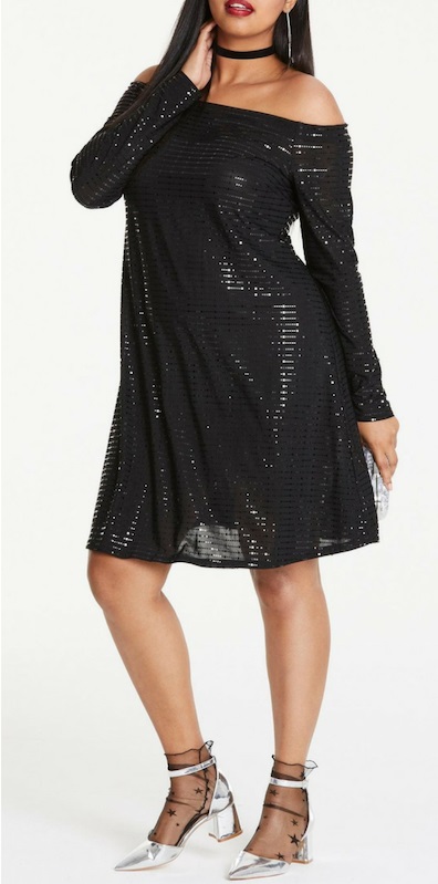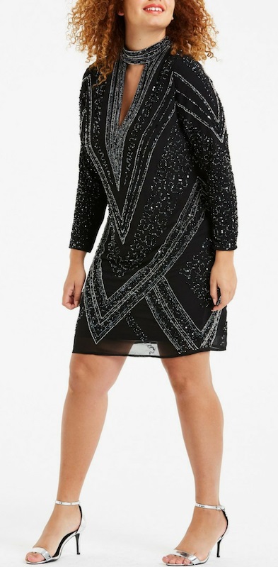 As I said in that post, when I see sequined plus size frocks that I like, I grab them! They are a rarity and sell out quickly. And let’s be honest, when it comes to plus size party dresses, modern, chic, and unique dresses are hard to come by. That said, I believe it is never too early to start shopping for NYE or holiday parties! No more “old lady” dresses for us!