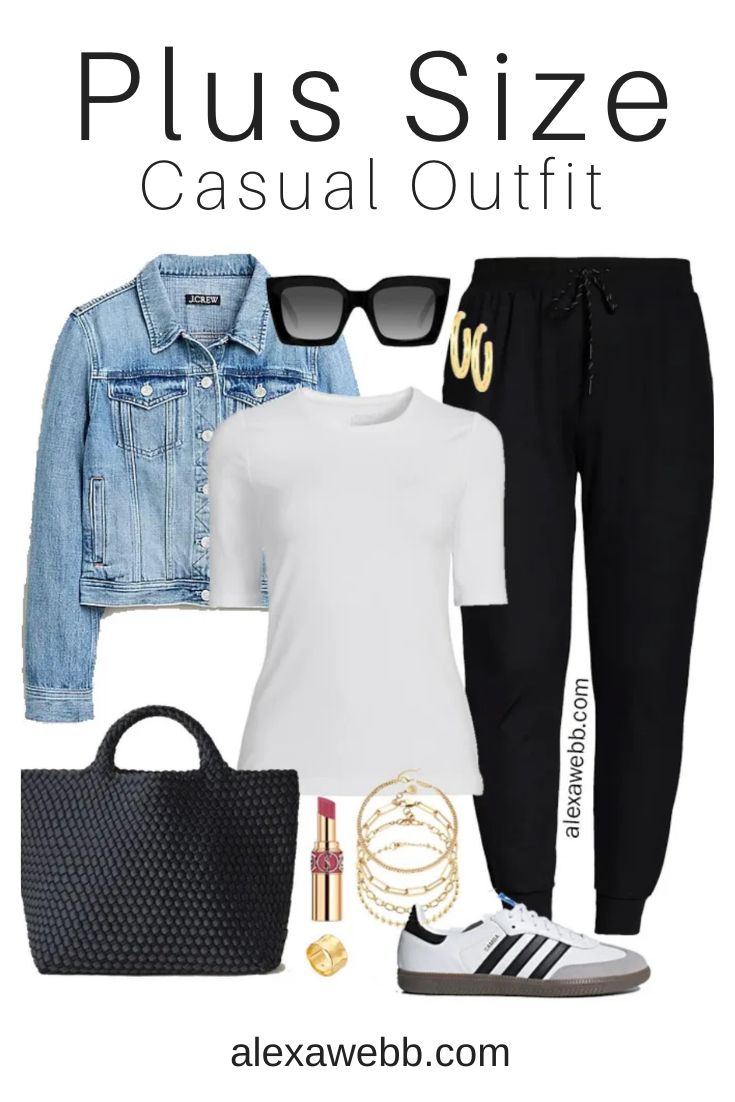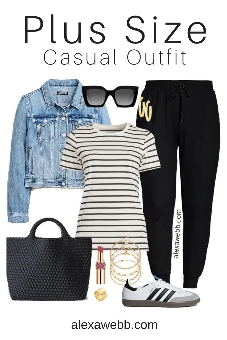 Two plus size spring joggers outfits for relaxing, maxing, and running errands.